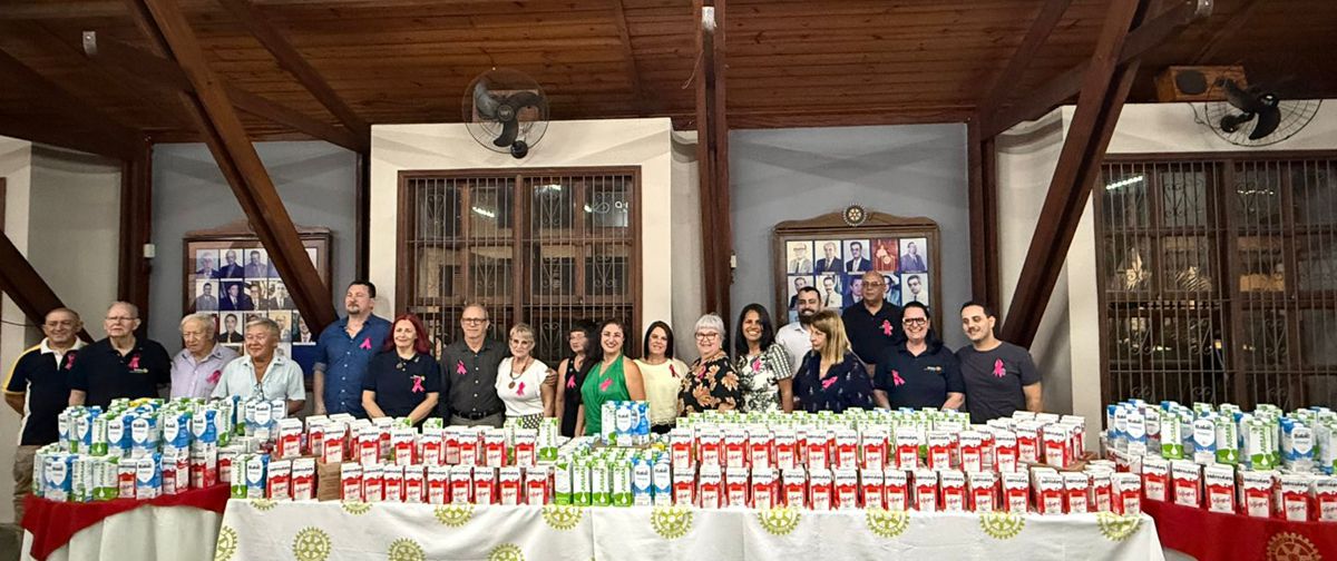 Em alusão ao Outubro Rosa, os associados ao Rotary Club de Agudos, SP (distrito 4621), realizaram uma campanha que arrecadou 655 litros de leite para a Associação do Câncer de Agudos. A instituição entrega semanalmente medicamentos, alimentos, suplementos e leite para as cerca de 60 pessoas atendidas no local.