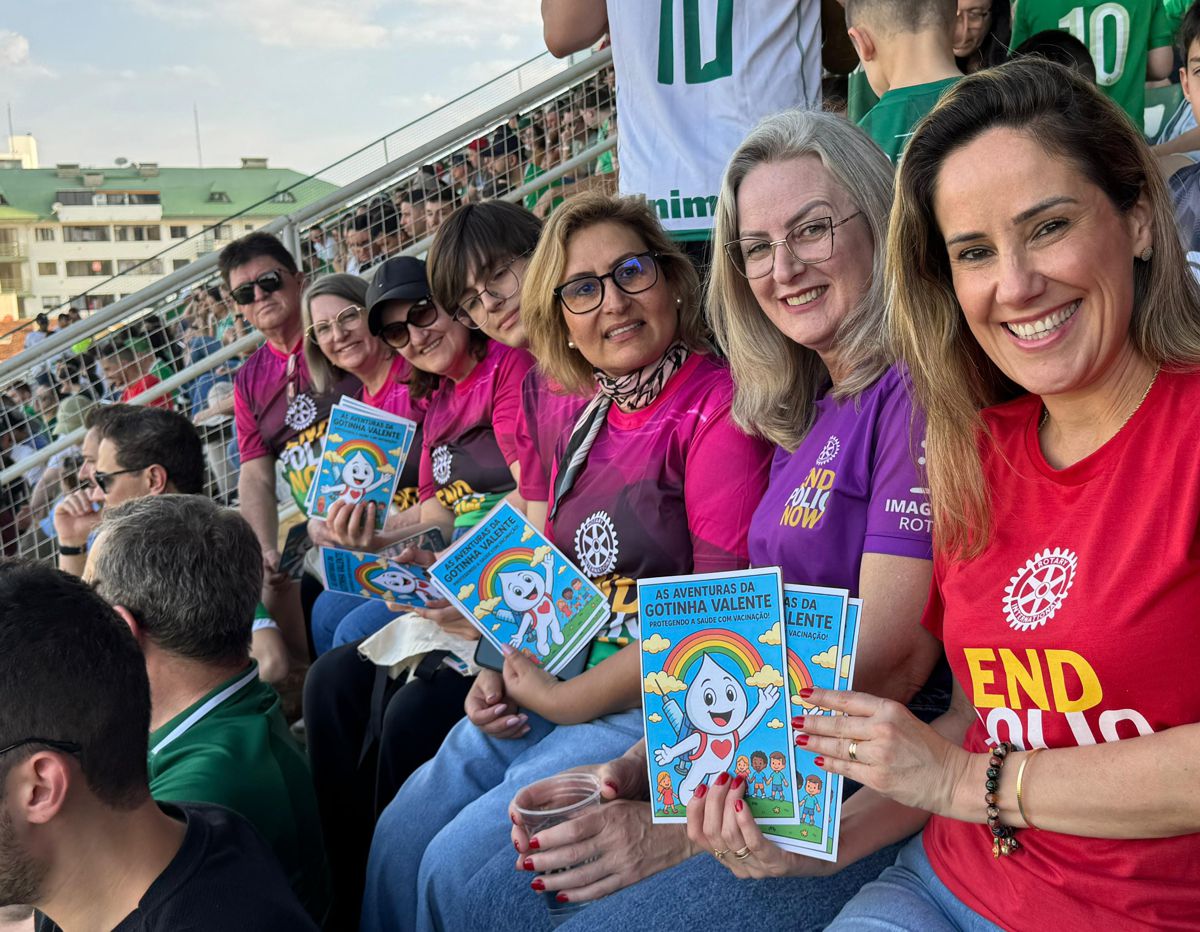 Em outra ação, o clube, dessa vez em parceria com o Rotaract de Chapecó, desenvolveu um gibi ilustrado sobre a importância da vacinação de forma lúdica e educativa. A revista em quadrinhos percorreu escolas do município junto com a mascote Gotinha e esteve presente na Corrida Rústica da Polícia Militar de Chapecó e na Arena Condá em um jogo da Chapecoense pela Série B do Campeonato Brasileiro (foto), momento em que a faixa da campanha contra a pólio também entrou em campo.