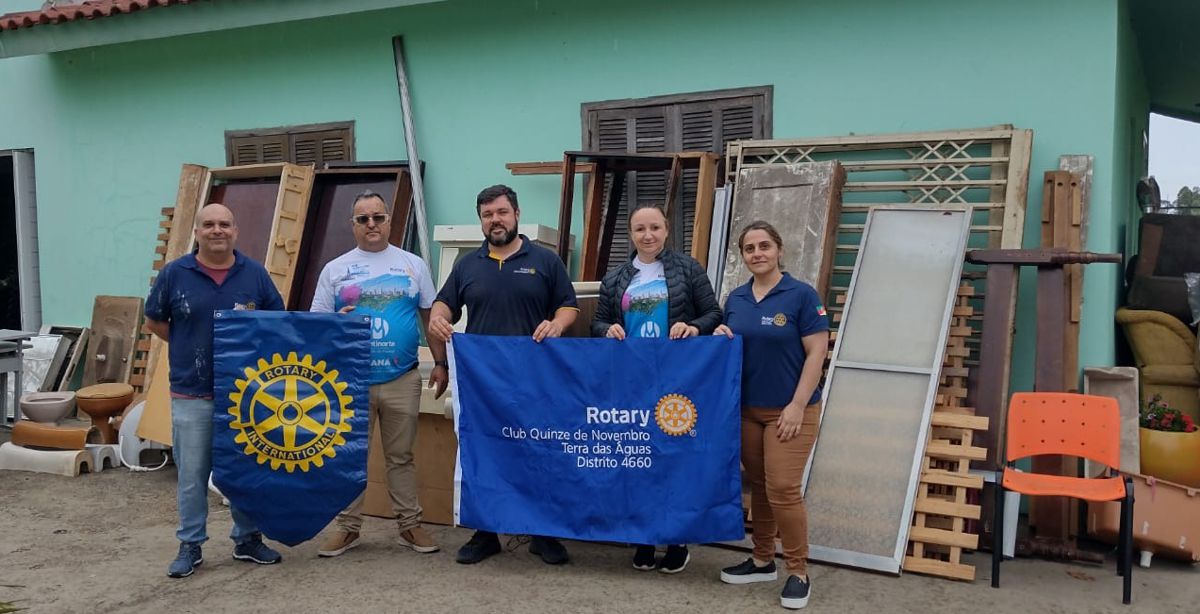 O Rotary Club de Quinze de Novembro-Terra das Águas, RS (distrito 4660), enviou em outubro mais uma remessa de donativos para as famílias atingidas pelas enchentes na cidade gaúcha de Agudo. Foram entregues ao Rotary Club local, móveis e materiais de construção arrecadados com a comunidade e que serão direcionados a quem precisa.